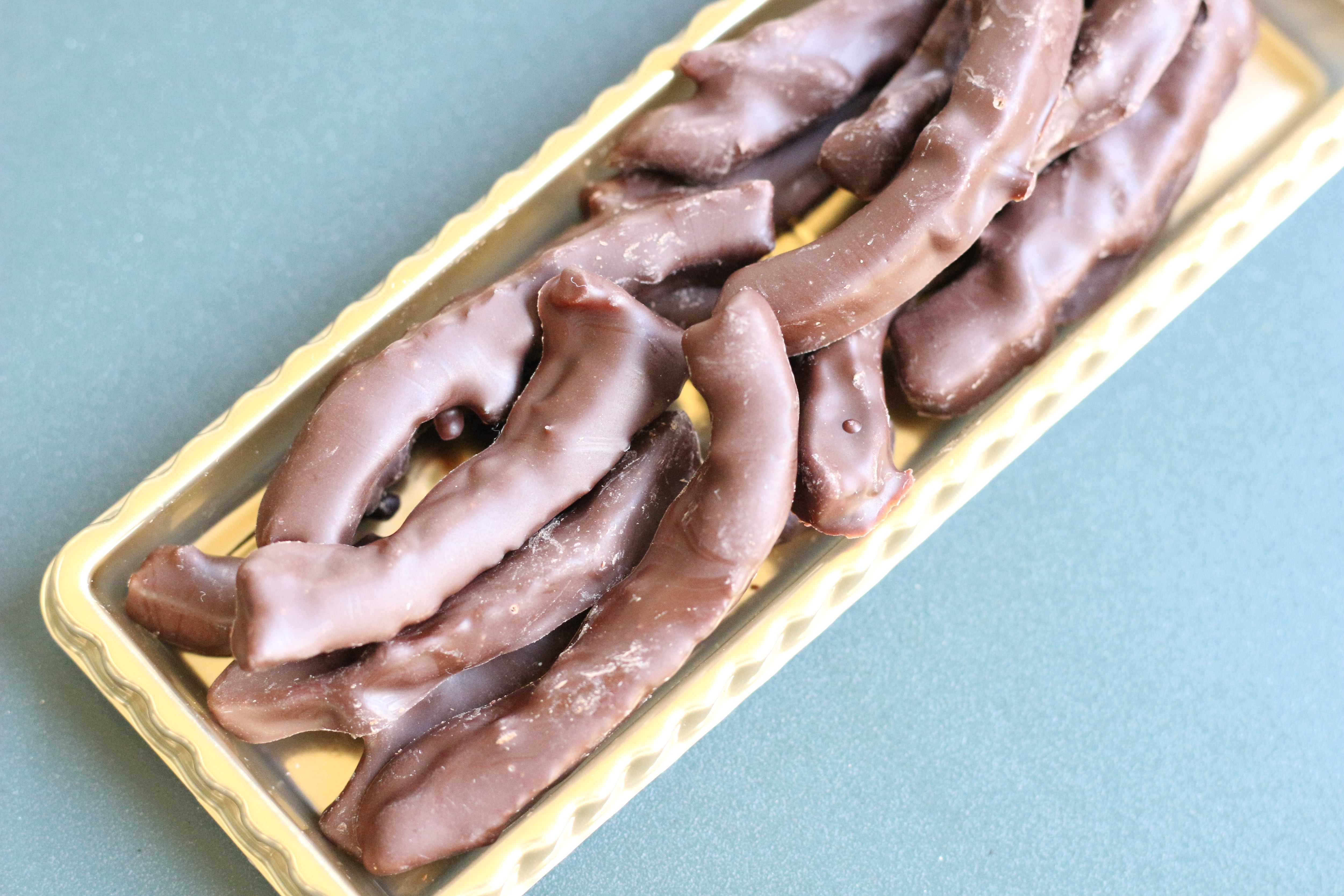 高知産の柚子を使って、自家製ドライフルーツを作り、チョコレートをかけて仕上げました。